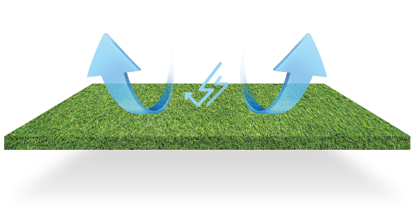 When two surfaces rub against each other, static electricity can be created. In extremely cold or hot weather or when humidity is very low static electricity increases. We use antistatic technology in our artificial grass products to prevent a build-up of static charge.